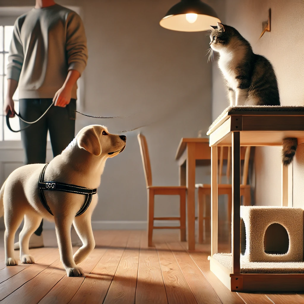 - 강아지의 훈련 강화 🐶: 강아지는 고양이보다 더 활동적이고 흥분하기 쉽기 때문에 기본적인 명령(앉아, 기다려 등)에 대한 훈련이 잘 되어 있어야 고양이와의 상호작용이 훨씬 원활해집니다. 이러한 훈련을 통해 강아지가 고양이에게 적절한 태도를 취하도록 유도하세요. 👍